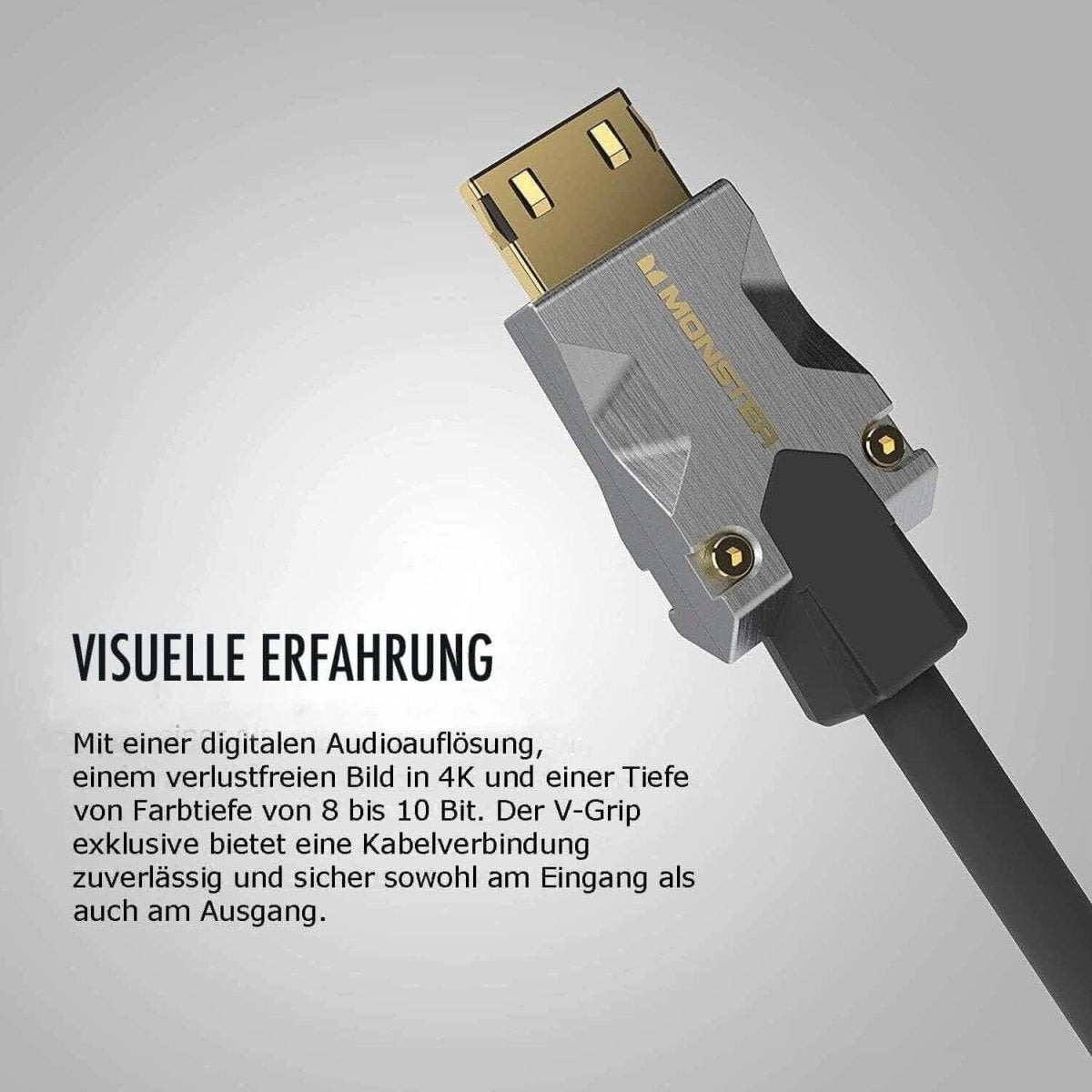 Jazeker. Deze kabel is voorzien van de exclusieve Monster V-Grip™ connector, die zorgt voor een extra stevige en veilige aansluiting in de HDMI-poort, waardoor onbedoeld wegglijden of losse verbindingen worden voorkomen.